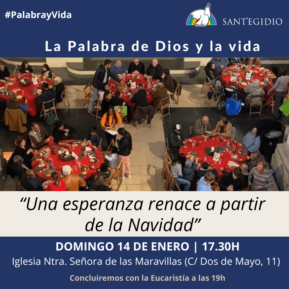 Os invitamos a encontrarnos nuevamente para reflexionar juntos sobre cómo prolongar el Espíritu de la Navidad de la esperanza, la acogida y la fraternidad a lo largo de todo el año. Os esperamos a este Domingo 14 de enero a las 17.30h en la Iglesia Ntra. Señora de las Maravillas.