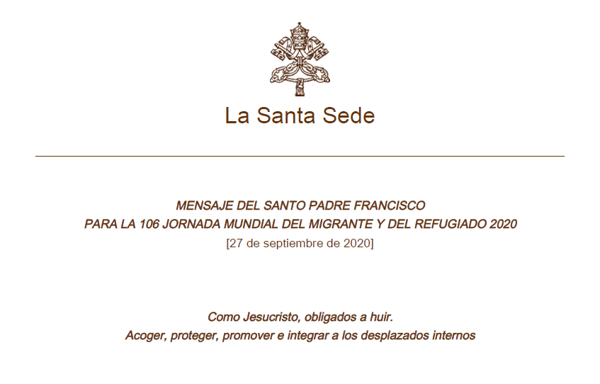 Mensaje completo del Papa Francisco para la 106ª Jornada Mundial del Migrante (Clic sobre la imagen)