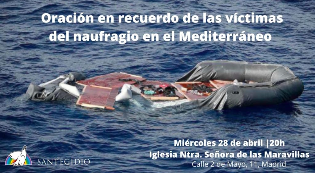El miércoles 28 de abril la Comunidad de Sant’Egidio en Madrid celebrará una vigilia de oración para recordar a las víctimas del último naufragio ocurrido frente a las costas de Libia. Iglesia de Nuestra Señora de las Maravillas (c/ Dos de Mayo 11) Miércoles 28 de abril. 20:00 horas