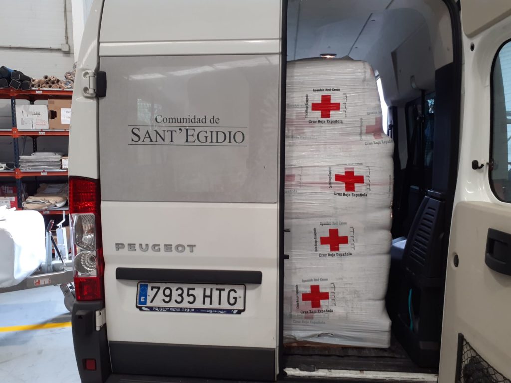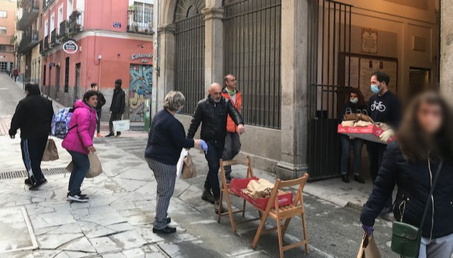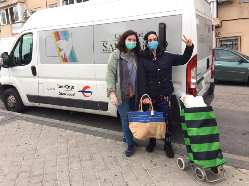 Los Jóvenes por la Paz y el movimiento «Gente de Paz» de la Comunidad de Sant’Egidio en Madrid están entregando todas las semanas lotes de comida, que no solo incluyen productos no perecederos, sino también carne, fruta y verdura que permite aliviar la difícil situación de muchas familias madrileñas, que vivían del pequeño comercio o de la venta ambulante. Estamos viendo que las familias se están agrupando por la crisis y ahora conviven en grupos de 10-15 personas en pisos minísculos.