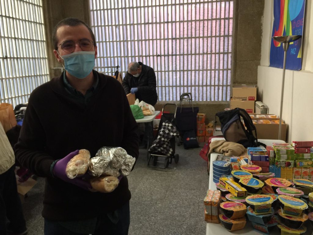 Guardando todas las medidas de precaución e higiene para evitar la propagación de la enfermedad, cada miércoles, jueves y viernes en la Iglesia Ntra. Señora de las Maravillas damos la cena, artículos de aseo y mantas a muchas personas sin hogar o que viven en pequeñas habitaciones- o incluso en trasteros- y que en estos momentos sufren grandes dificultades para alimentarse a causa de la crisis.
