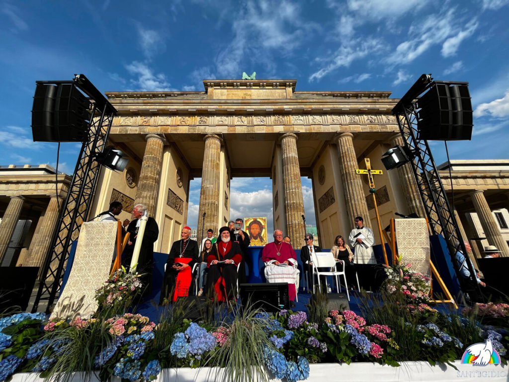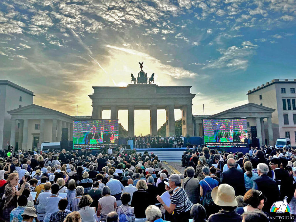 Fueron días de intenso diálogo en los que se tendieron puentes y caminos de paz y que culminaron con una emotiva ceremonia en la Puerta de Brandemburgo, precisamente en la capital germana donde se hizo realidad la promesa de que ningún muro es para siempre. En este lugar lleno de simbolismo, los representantes de las religiones mundiales hicieron público el llamamiento de paz 2023 en el que piden «que caigan los muros visibles e invisibles que dividen a los pueblos de Europa, Asia, África, en las Américas, en medio del mar Mediterráneo para los migrantes que huyen de las guerras».