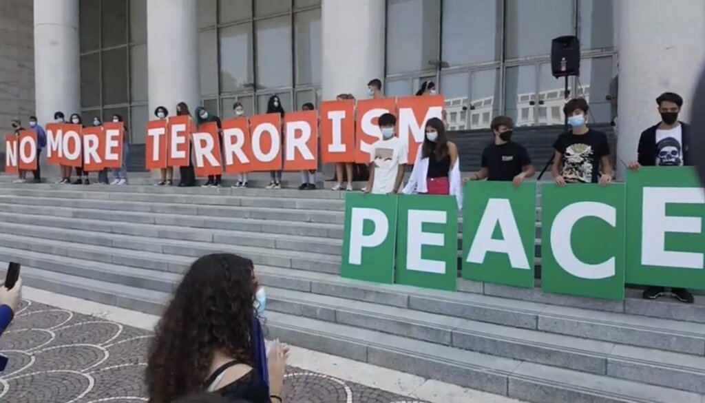 Miles de jóvenes de 70 ciudades y 16 países se reunieron en una asamblea sin fronteras en el 20º aniversario del 11-S para decir “NO al terrorismo, NO a la violencia y SÍ a la amistad global y a la paz.