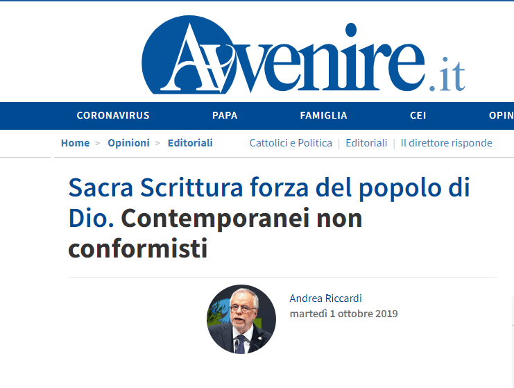 Recuperamos la reflexión de Andrea Riccardi sobre «la fuerza de la Palabra de Dios» en este artículo en Avvenire (clic sobre la imagen para acceder al texto completo (ITALIANO).