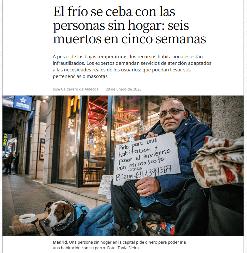 El semanario Alfa y Omega recoge estos días la dura realidad que viven muchas personas sin hogar ante el frío, que en las últimas semanas ha provocado varias muertes en la calle. El reportaje pone rostro a una situación que sigue creciendo y que interpela a toda la sociedad.