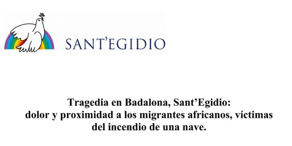 Sant’Egidio expresa su dolor y proximidad a los migrantes africanos, víctimas del incendio de una nave en Badalona