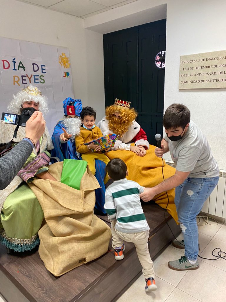 Sus Majestades de Oriente visitaron a los niños y niñas de las Escuelas de la Paz de Pan Bendito, Lavapiés y Malasaña. Hubo sonrisas, fiesta, roscón chocolates y mucha ilusión, junto a los Jóvenes por la Paz, que habían estado preparando esta fiesta con mucha ilusión desde hace semanas. ¡Y llegaron los Reyes a Sant’Egidio!