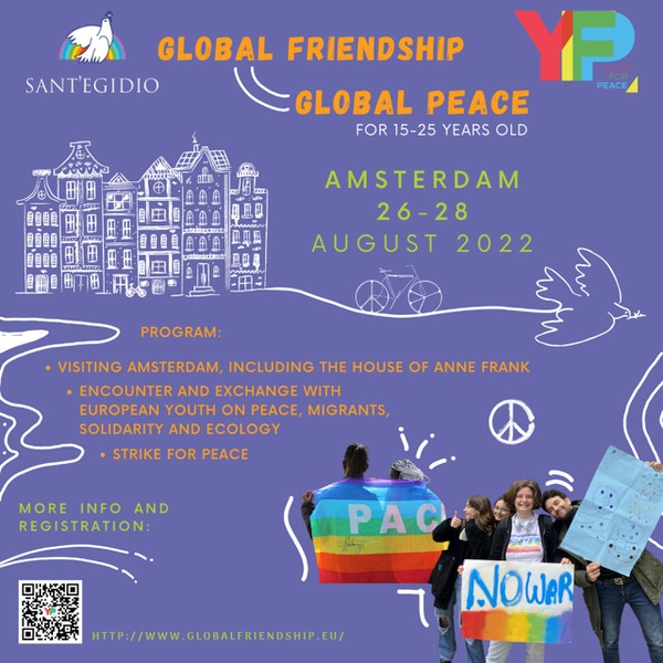 Una delegación del movimiento Jóvenes por la Paz de la Comunidad de Sant’Egidio en Madrid participó en el gran encuentro de los Jóvenes por la Paz de toda Europa, que este año volvió a realizarse presencialmente del 26 al 28 de agosto en Ámsterdam, Holanda, con presencia de una delegación de jóvenes ucranianos.