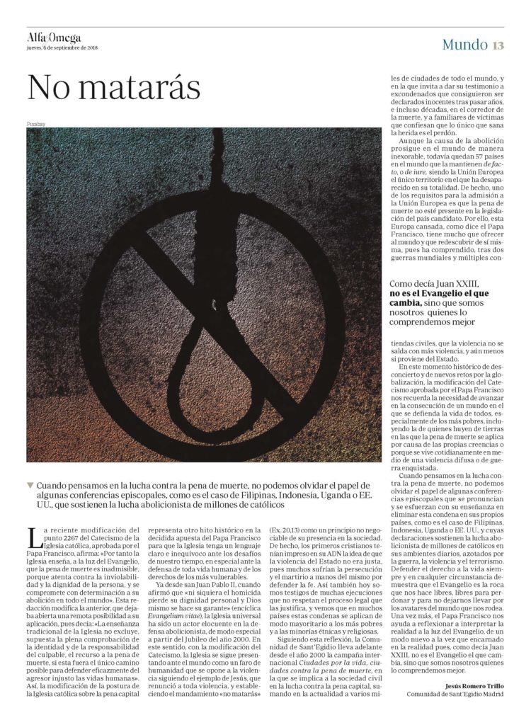 «No matarás» (artículo publicado en Alfa y Omega)