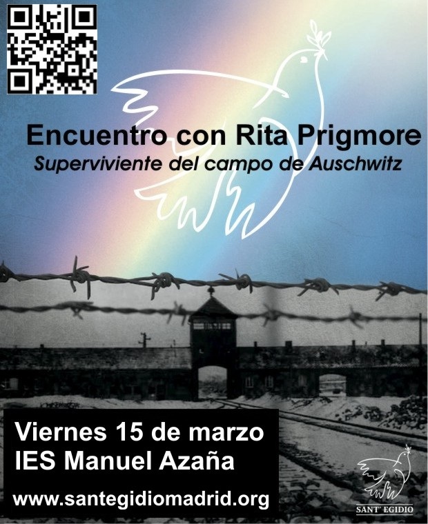 La Comunidad de Sant’Egidio ha invitado a Rita Prigmore, superviviente del campo de concentración de Auschwitz, para impartir diversas conferencias en Madrid en institutos de bachillerato y en la sede de la Comunidad de Sant’Egidio.