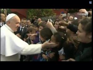 El papa Francisco, de visita a Tor Bella Monaca, saluda a los discapacitados, la Escuela de la Paz y a los ancianos de Sant’Egidio