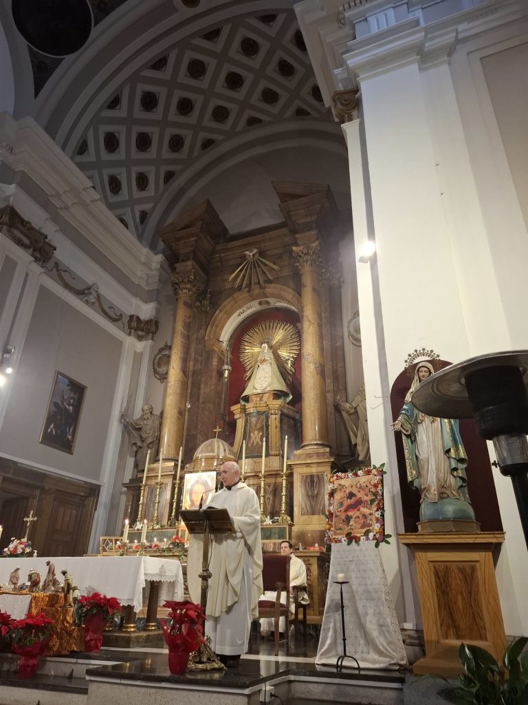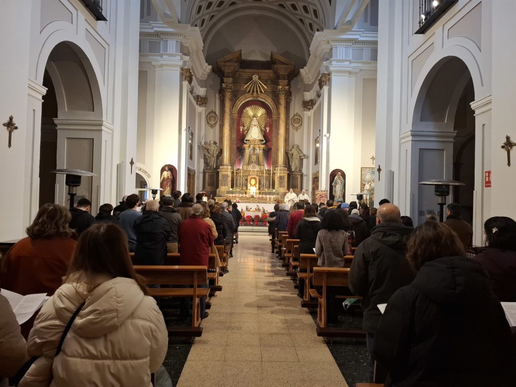 La jornada comenzó con una liturgia de Navidad en la Iglesia de Nuestra Señora de las Maravillas, donde se reunieron quienes colaboraron en las comidas y muchos de los amigos con los que la Comunidad comparte la vida y el servicio durante todo el año. Javier Cuevas, que presidió la Eucaristía, exhortó en su homilía a dejarnos iluminar por la luz serena de la Navidad, promesa de que Dios siempre está con nosotros, y una invitación a reconocer su presencia en los más frágiles y en los gestos sencillos de fraternidad.