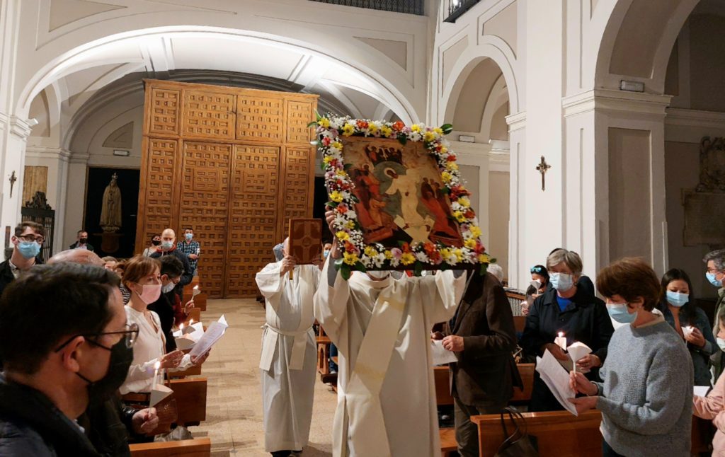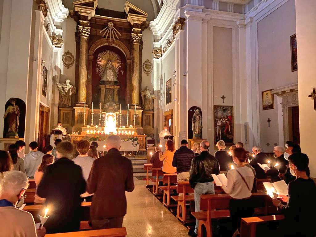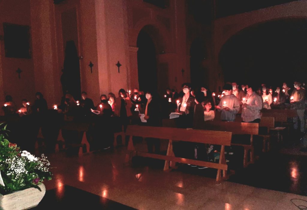 Como signo de que el mal no tiene la última palabra, la Iglesia Nuestra Señora de las Maravillas completamente a oscuras, poco a poco se iluminó a partir de la luz del cirio Pascual y de las pequeñas velas en las manos de cada persona. Y así fue como esta luz de la Resurrección de Jesús se abrió paso frente a la oscuridad, simbolizando así un renovado compromiso de sumar fuerzas en favor de la paz.